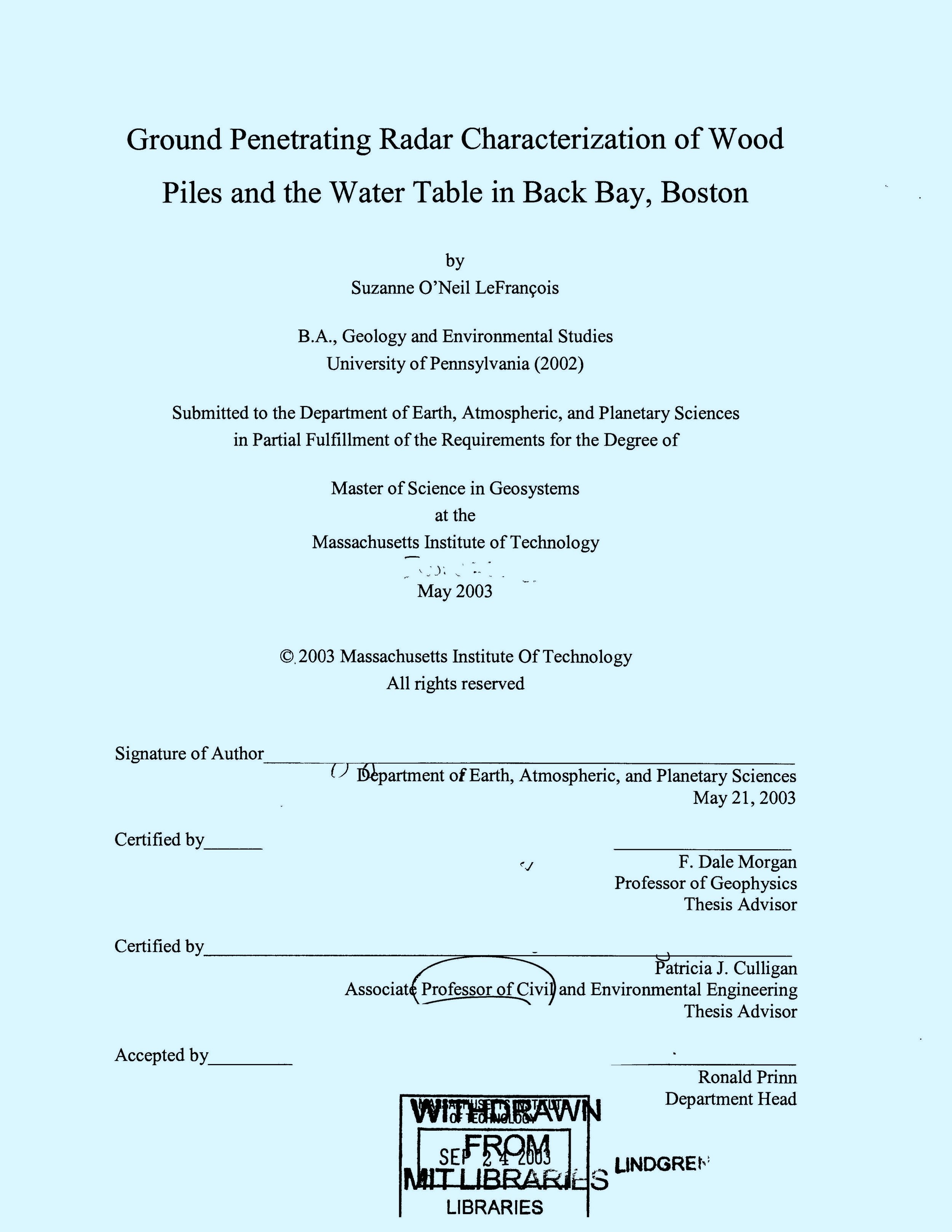 Ground Penetrating Radar Characterization of Wood Piles and the Water Table in Back Bay, Boston (2003)